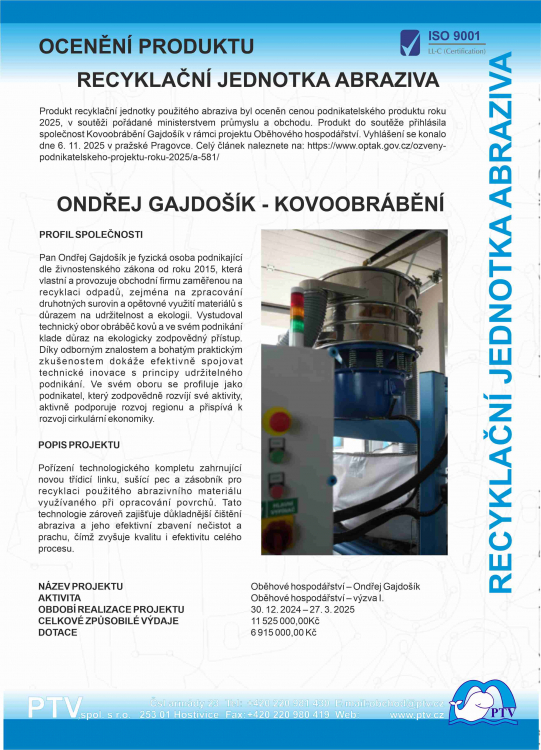 Ocenění našeho zákazníka Kovoobrábění Gajdošík v Podnikatelském projektu roku 2025